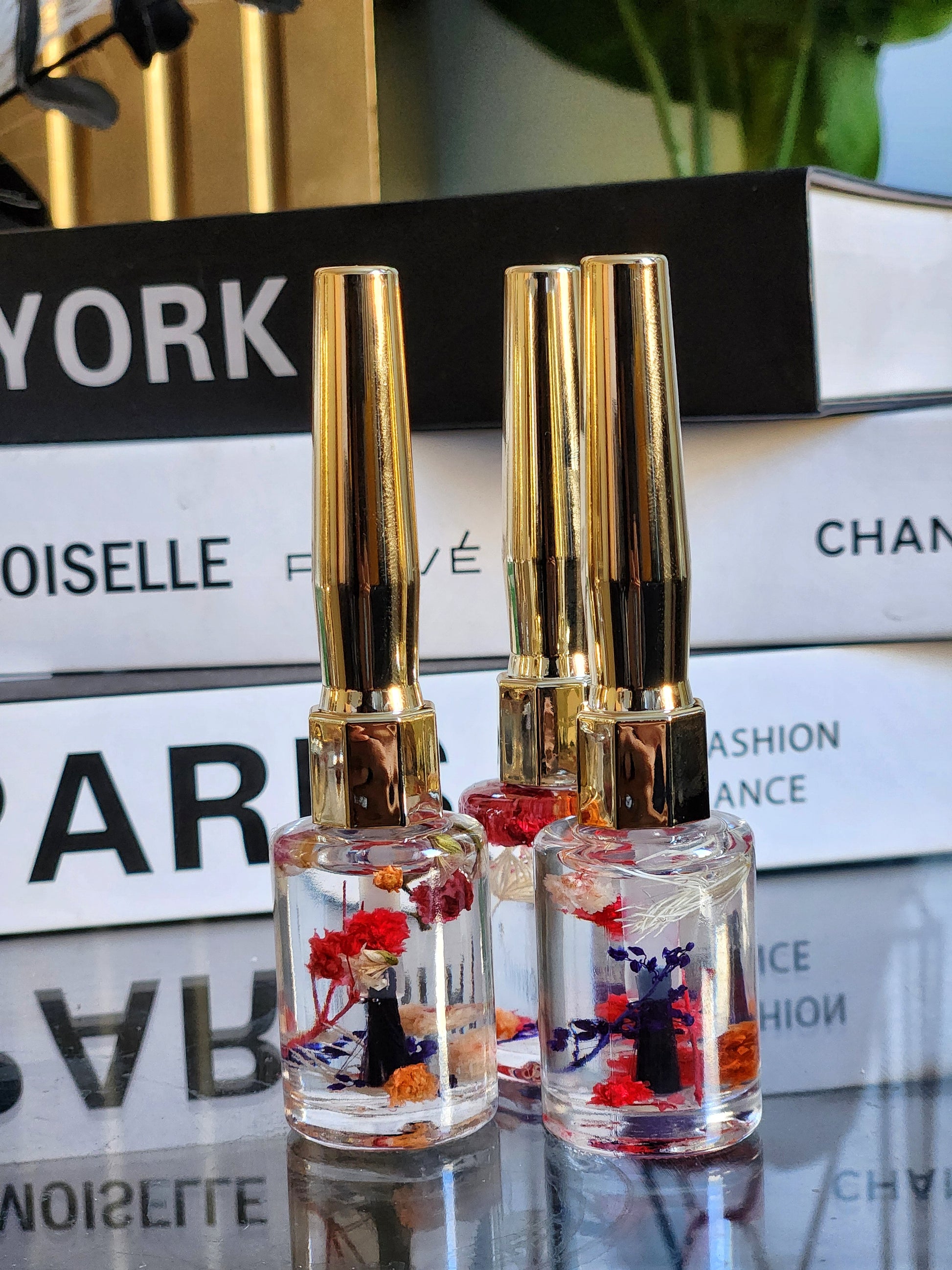 A garden of hydration in every drop. Our Botanical Glow Cuticle Oil features an exquisite assortment of dried flowers infused into a luxe botanical oil formula enriched with Aloe Vera, Argan Oil, Avocado Oil, and Vitamin E. Packaged in a chic 13ml or pack of 3 3ml gold bottle, this fast-absorbing oil delivers deep moisture while helping maintain strong, healthy-looking nails.